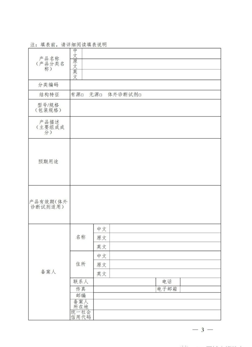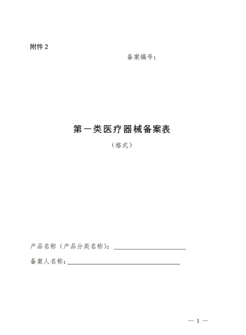 (一)第一类医疗器械备案表