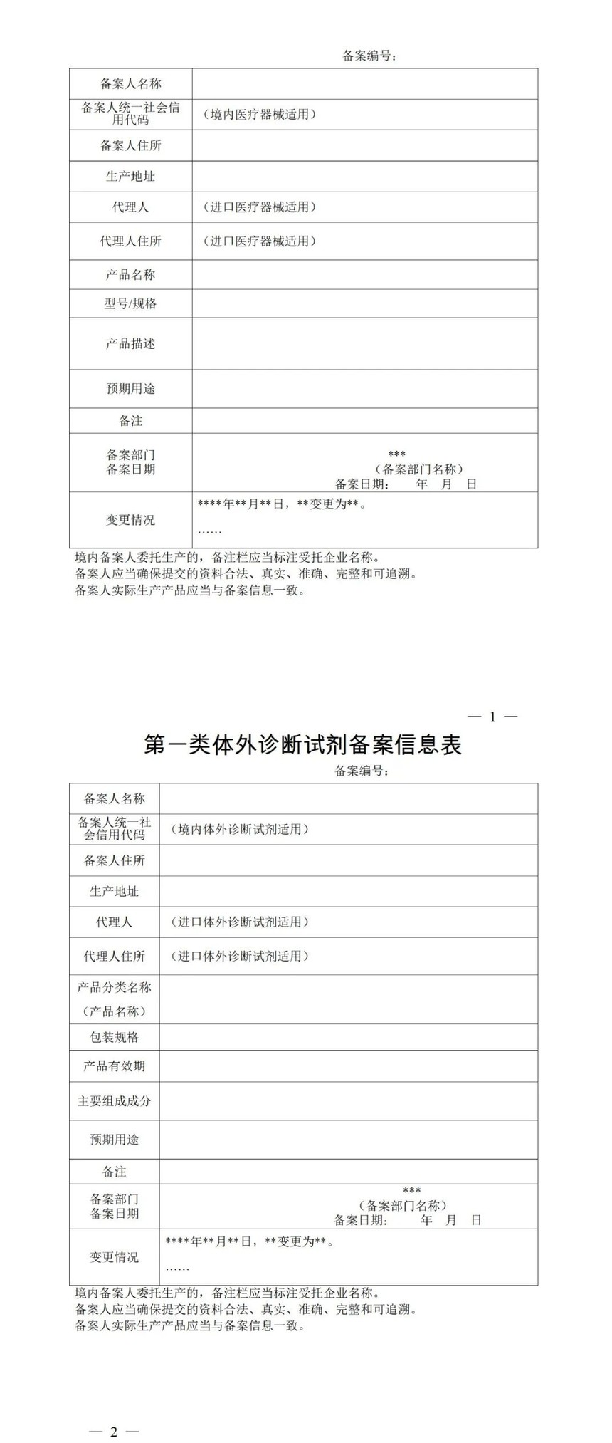 第一类医疗器械备案信息表和第一类体外诊断试剂备案信息表